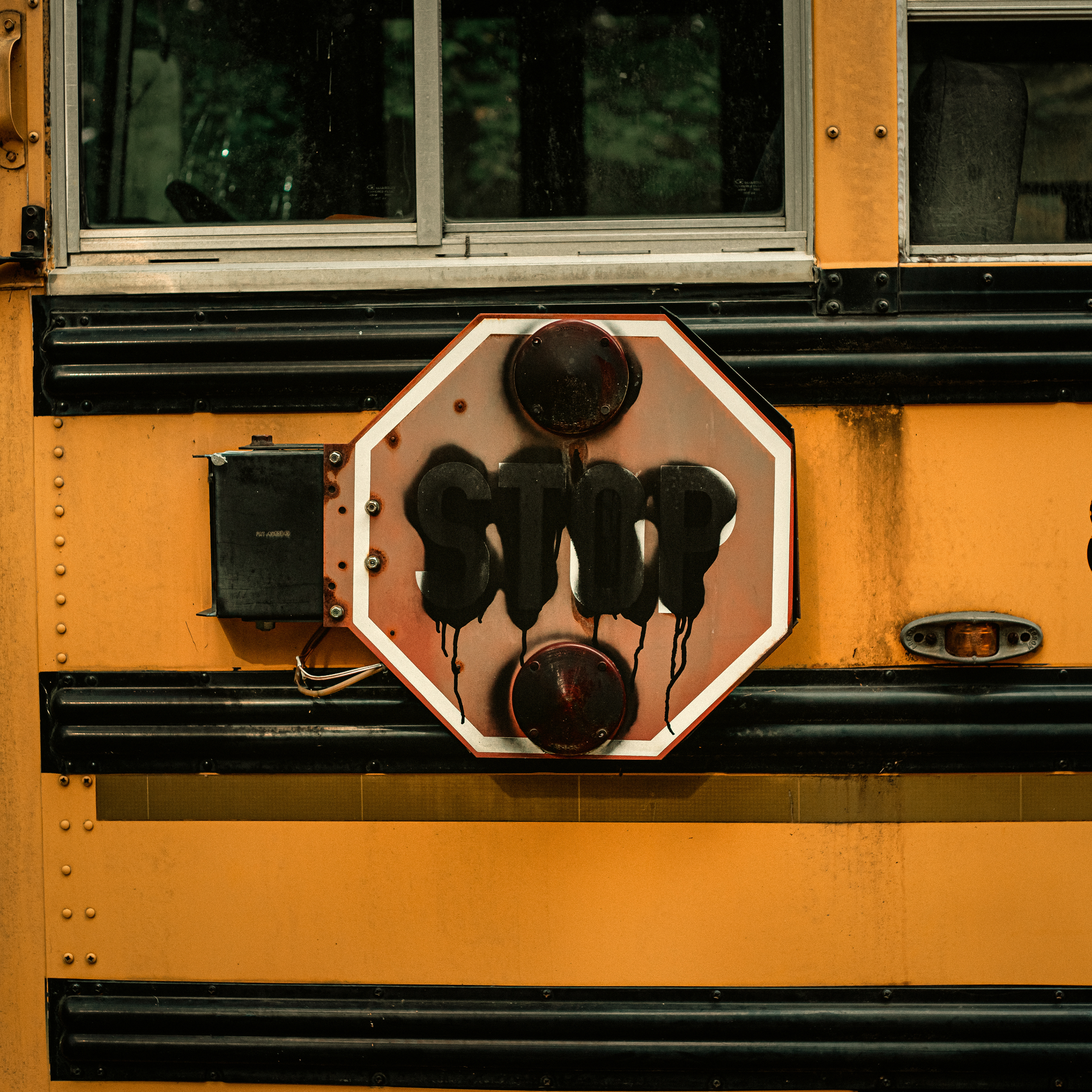 A simple photographic vignette of an abandoned school bus being reclaimed by nature.